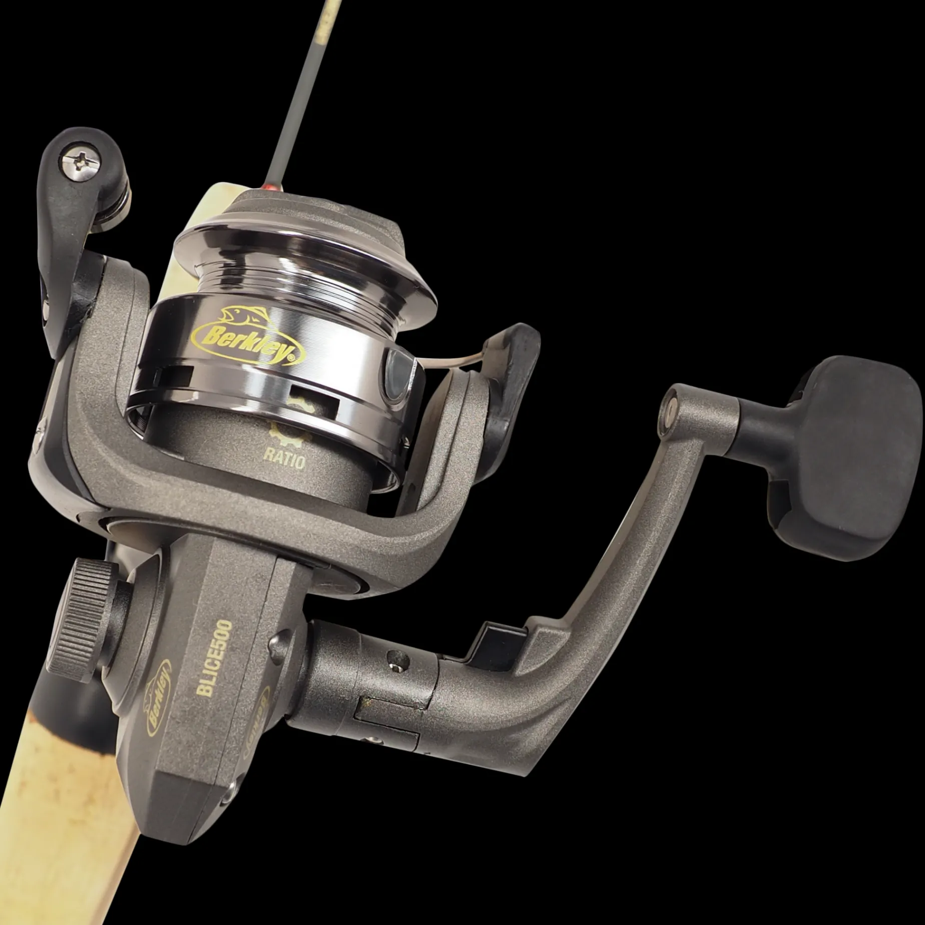 Isfiskeset Med Spö Och Rulle. Rullen Har Storlek 500.